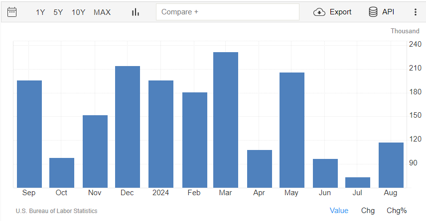 Nel settore non-agricolo privato, nel mese di agosto sono stati creati 118 mila posti di lavoro rispetto ai 74 mila del mese precedente (rivisti da 97 mila). Una crescita inferiore a quella indicata dal consensus a 139 mila. Il dato è rilasciato dall’U.S. Bureau of Labor Statistics.