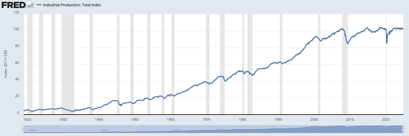 Attualmente la produzione industriale statunitense non mostra particolari segni di cedimento ed al momento rimane sostanzialmente laterale: è importante che non scenda sotto il box di congestione che sta formando.