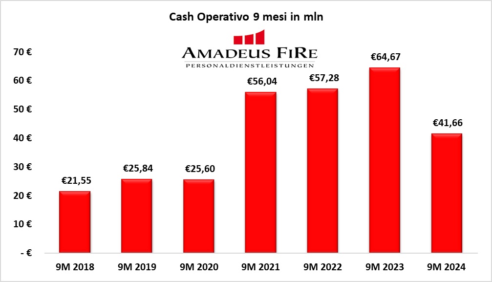 Il flusso di cassa operativo nei primi nove mesi dell'anno è stato pari a € 41,7 mln. Tuttavia, il cash flow ha risentito di un significativo aumento delle imposte pagate (19,0 milioni di euro rispetto ai 6,6 milioni del 2023), riflettendo una pressione fiscale crescente.