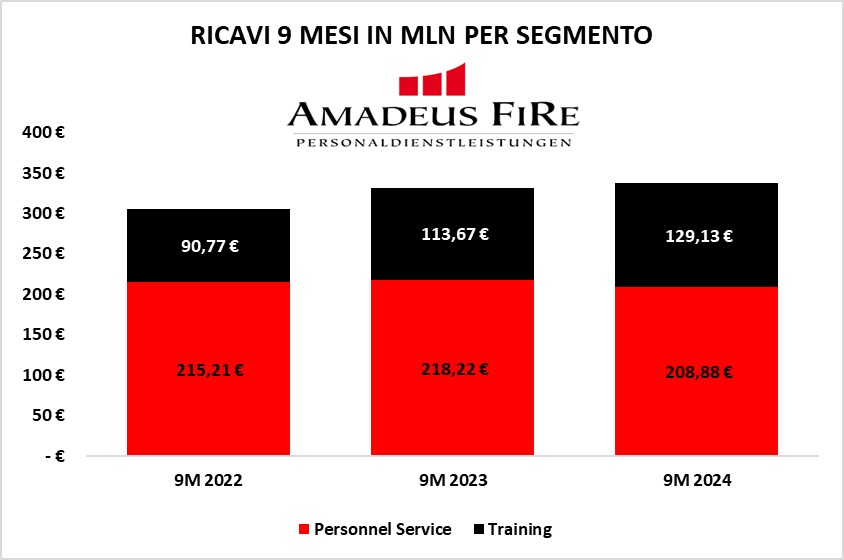 Nel periodo gennaio-settembre 2024, AMADEUS FIRE ha registrato ricavi consolidati di € 337,7 mln, in crescita dell'1,9% rispetto allo stesso periodo del 2023. Tuttavia, i risultati variano significativamente tra i segmenti: