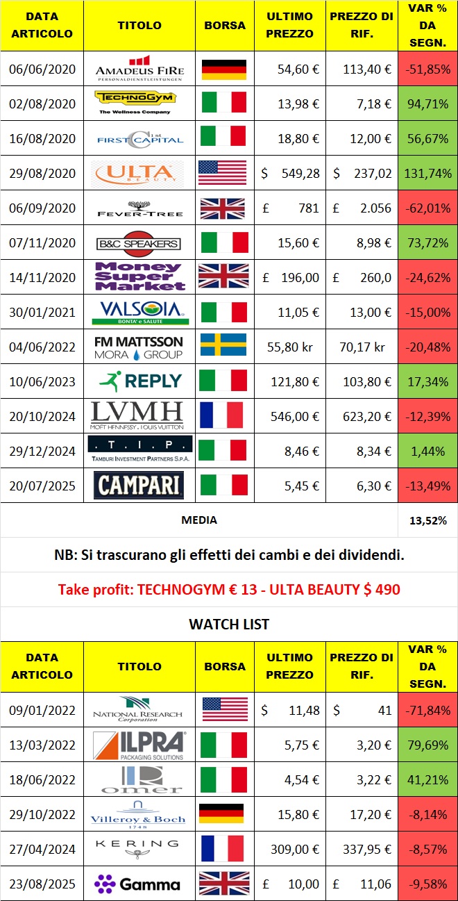 Chi invece ha avuto il coraggio di muoversi tempestivamente dopo la segnalazione dello scorso mese può, legittimamente, concedersi una soddisfazione: il mercato, almeno per ora, gli ha dato ragione.