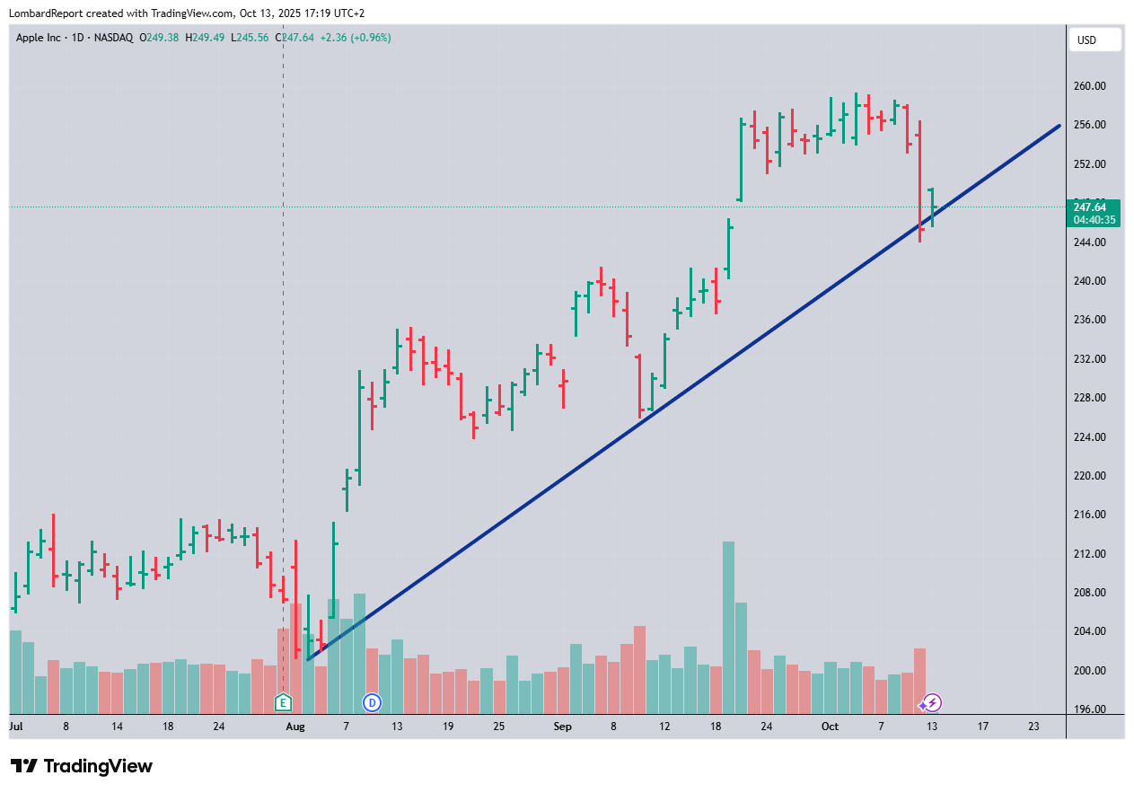 APPLE: vediamo come chiude oggi e se del caso domani passiamo un buy … siamo vicini alla trendline del settimanale e quindi o sale o scende (ma non va in orizzontale)