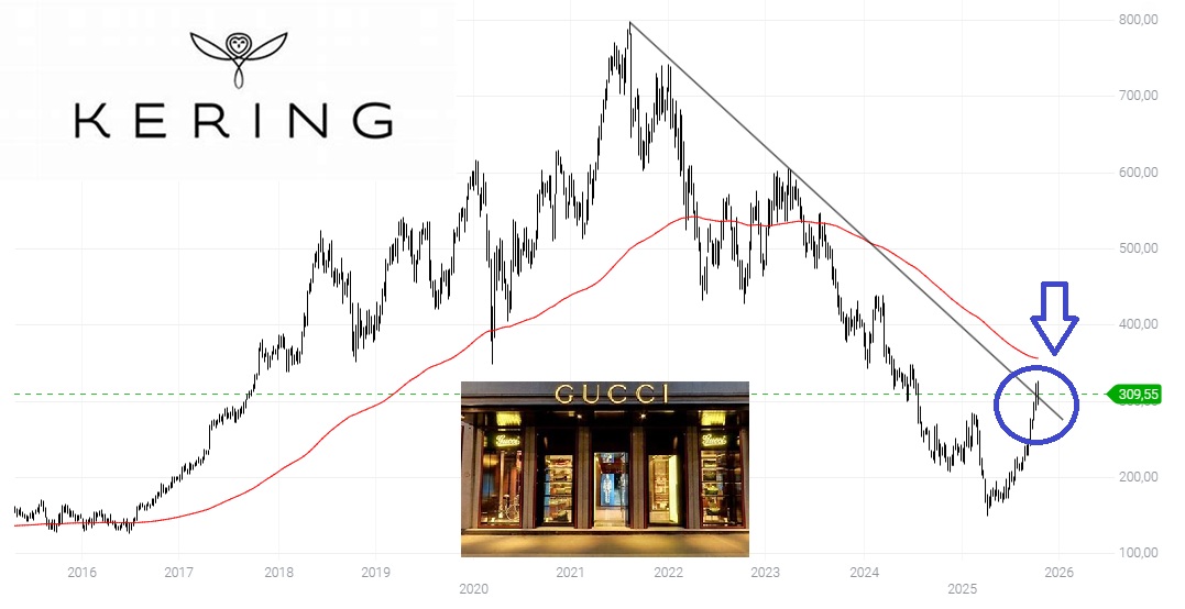 Sul fronte fondamentale, la situazione di KERING resta complessa ma in evoluzione.