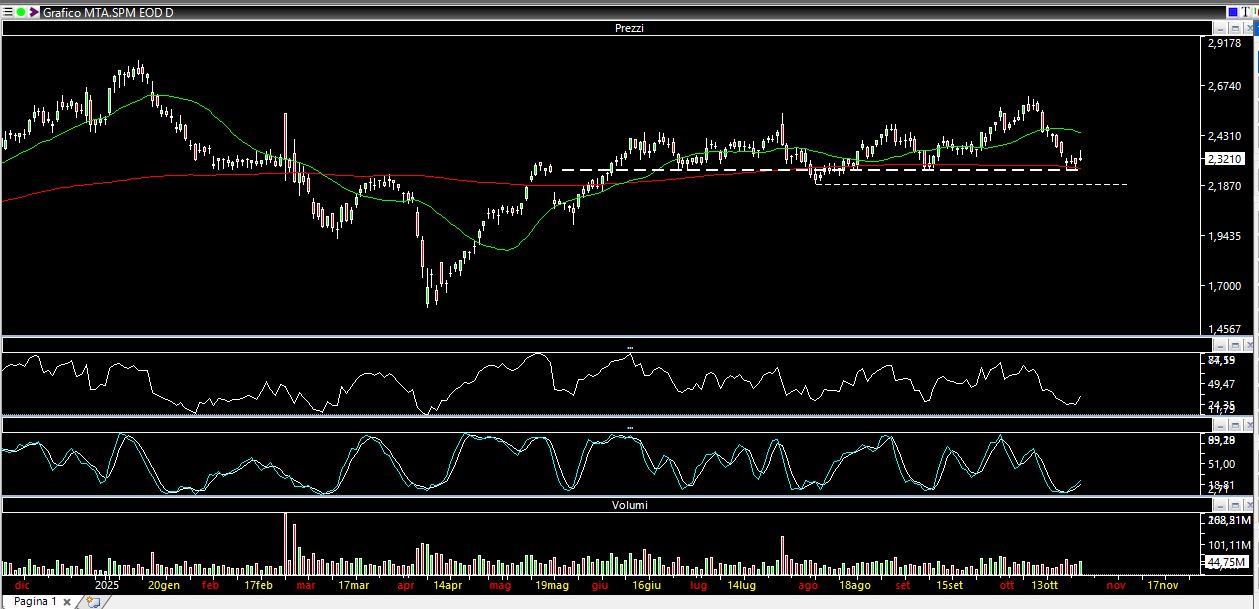Stasera ha pubblicato Saipem ed anche in questo caso starei attento a come verranno digeriti i dati. Mi spiego meglio. Se manca l'effetto wow, come nel caso di Unicredit, è possibile che si provi un affondo iniziale, tanto più che graficamente abbiamo una bella area in cui far scattare gli stop ed attirare i software volumetrici. Questa area è attorno a 2.27 euro prima e 2.20 poi. Cautela: se qualcuno avesse lasciato qualche ordine in macchina lo revocherei immediatamente. Alle volte il profitto lo si fa rispettando gli stop o i livelli, NewPrinces docet.