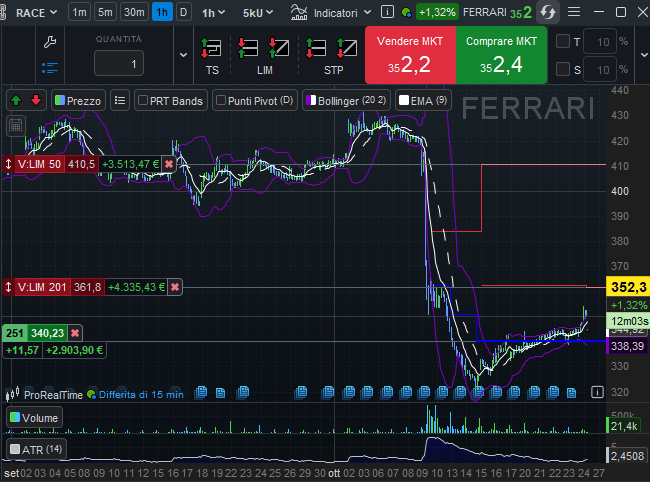 Il titolo, quotando a 353,9 euro in questa giornata di venerdì, prosegue il suo avvicinamento al primo obiettivo di 363 euro. La solidità del trend è tale che il prossimo step, già dalla prossima settimana, potrebbe già diventare quello dei 370 euro. Ma il traguardo che abbiamo fissato per questa operazione – e che il mercato si sta incaricando di validare – rimane quello dei 400 euro. È la tecnica a indicarlo, non un'aspirazione.
