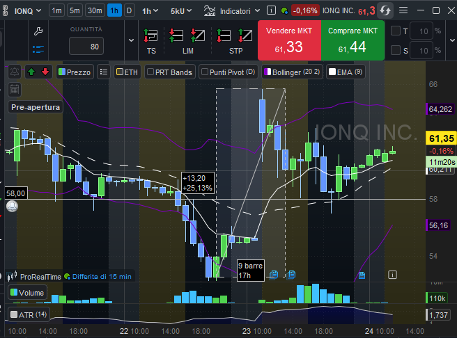 Il caso più lampante è stata la correzione di IONQ. L'area di acquisto individuata attorno ai 55$ in questo articolo Chi ci legge guadagna: i trade su IONQ, Fortinet confermano le previsioni - LombardReport.com ha rappresentato un livello tecnico cruciale.