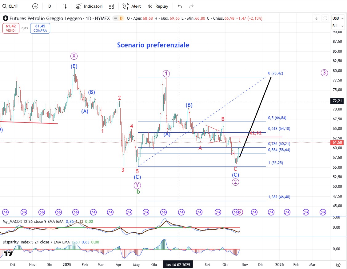 Sul petrolio abbiamo aperto una posizione long e stiamo a vedere. Con ogni probabilità beccheremo la correzione ma se il conteggio è giusto i prezzi dovrebbero salire nemmeno tanto lentamente.