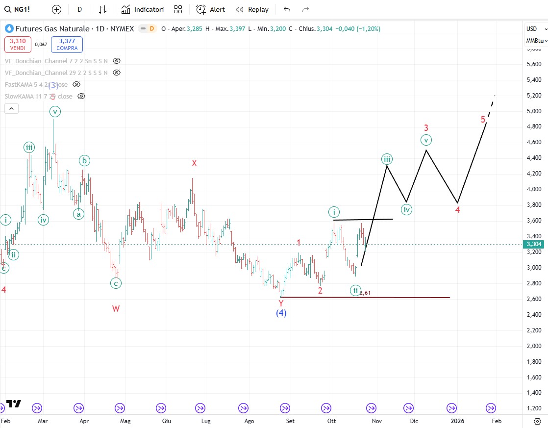 Il Gas Naturale dovrebbe salire su una 3 di (5) avvantaggiato anche dalla stagionalità favorevole.