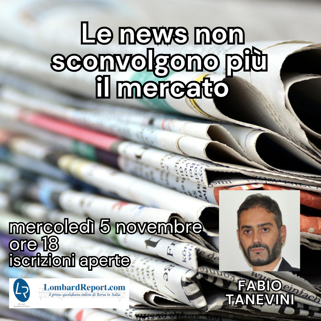 Ma questo fiume di notizie incide con forza sul mercato? Per Fabio Tanevini la risposta è no. Una risposta che argomenterà, grafici alla mano, mercoledì 5 novembre dalle ore 18, facendo anche riferimento ai recenti scambi tra Washington e Pechino sul tema dazi.