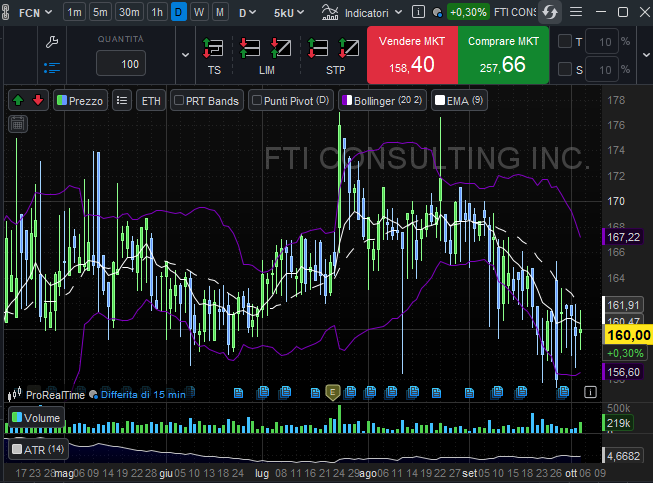 Anche su FCN (Fti Consulting) le sensazioni rimangono positive, sebbene in una fase ancora iniziale. Il titolo sta costruendo una base promettente e, nonostante la recente stasi, non ha invalidato le premesse rialziste. Le impressioni sono incoraggianti e il setup tecnico suggerisce pazienza, in attesa di una possibile accelerazione.