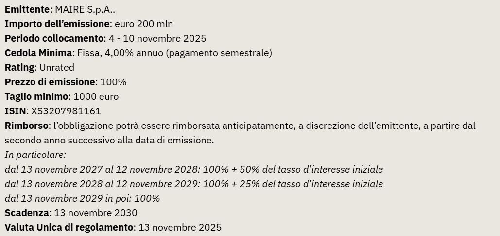 Ne ho fatto menzione la scorsa ottava in merito al classamento di un bond nella prima settimana di novembre. Queste le caratteristiche (fonte: Directa):