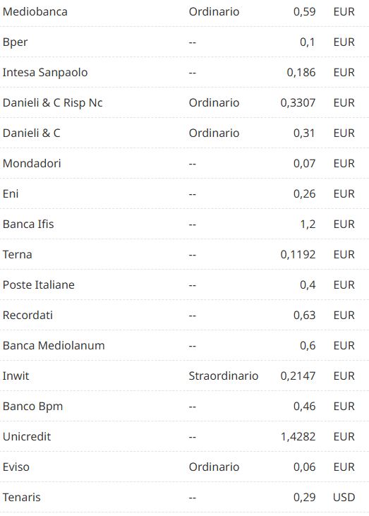 Di seguito il calendario degli stacchi di lunedì con data pagamento mercoledì 26 novembre.