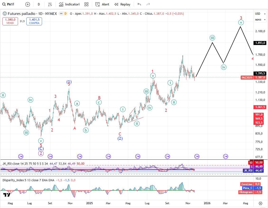 Platino e Palladio come ripeto da un pò di tempo dovrebbero terminare la fase correttiva più rapidamente di oro e argento avendo corso molto meno durante la lunga fase rialzista dell’oro.
