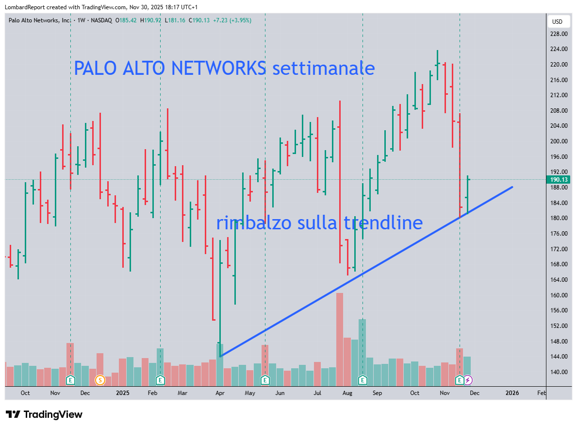 Un'altra azione su cui schiocca il buy del Portafoglio Storico è Palo Alto Networds (PANW), che esattamente come Zscaler ha battuto le aspettative degli analisti con il suo bilancio trimestrale alcuni giorni fa.