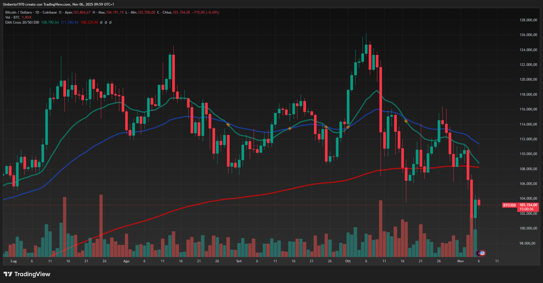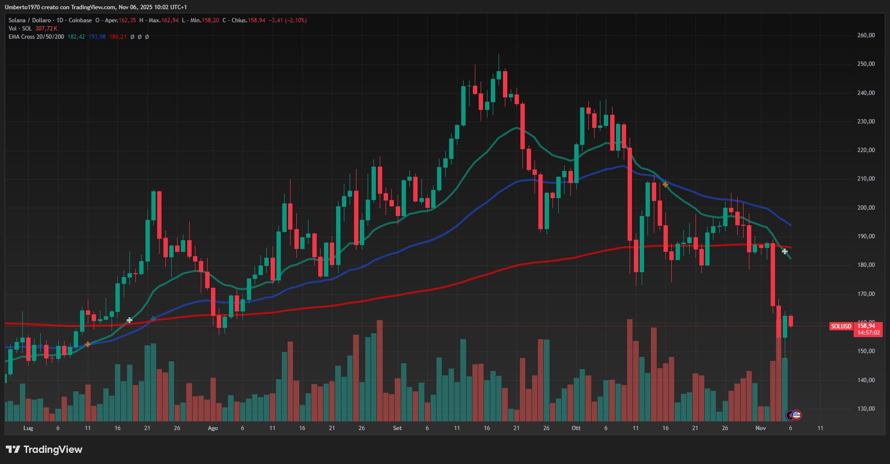 Accennavo nell'articolo della scorsa settimana (https://www.lombardreport.com/2025/10/29/una-nuova-scommessa-e-altri-suggerimenti/) all'importanza che la crypto-currency Solana potrebbe assumere in un futuro presumibilmente neppure troppo lontano. Ma negli ultimi giorni il mercato degli asset digitali ha visto una decisa frenata spingendo il BTC nuovamente verso la soglia psicologica dei $ 100.000 , livello toccato due volte a Giugno e che aveva costituito poi il trampolino per raggiungere i massimi in area $ 125.000 (livello anch'esso toccato due volte, prima ad agosto e poi ad inizio ottobre). Chiaramente il Bitcoin in difficoltà (ma comunque quello che sembra aver “tenuto botta” meglio di altri) ha portato tutte le principali protagoniste del settore ad accusare ribassi più o meno significativi : Ethereum, XRP e Solana hanno registrato drawdown tra il -15% e il -20%. Quindi finita la festa ? Il gioco è stato bello finché è durato ? Cosa ci aspetta adesso ? Ma soprattutto : perché è successo tutto questo adesso ?