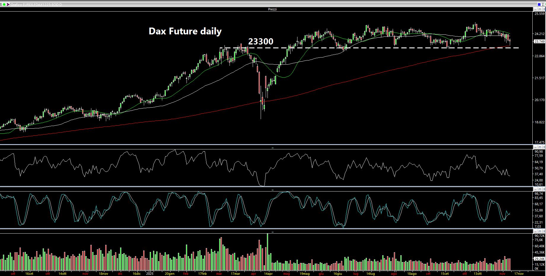 Situazione pressoché analoga anche per il Dax Future che venerdì ha testato la media a 200 di colore rosso e quindi al supportone dei 23300 punti (minimo a 23514). Certo è che se gli USA non brillano difficilmente riusciremo ad andare per conto nostro!