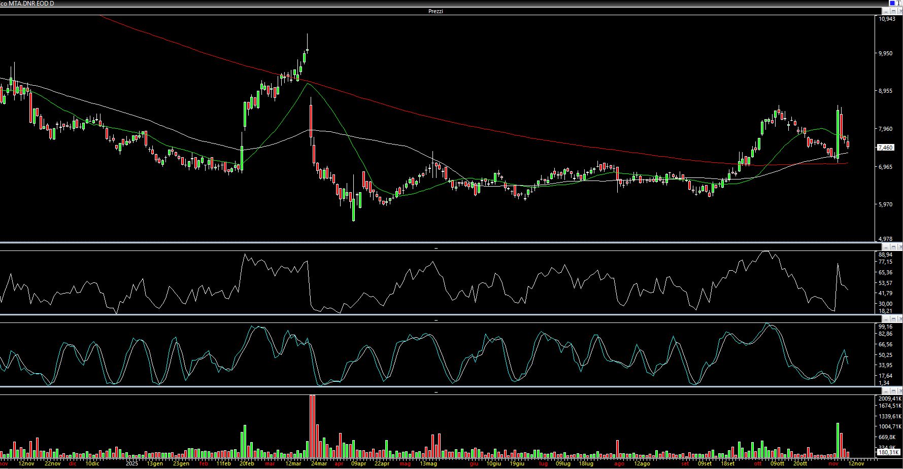 Tra le più shortate sul mercato. Alla fine è arrivata a 2,20 euro....ma con che fatica! Il pattern individuato la settimana scorsa (link https://www.lombardreport.com/2025/11/1/azioni-maire-tecnimont-azioni-saipem-2/)