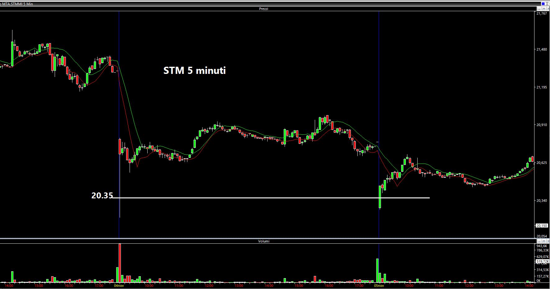 Casi analoghi si verificano anche in apertura e in settimana è stato il caso di STM con una discesa secca fino a 20,35 e una successiva risalita....e sempre nel famoso sogno mi era stato detto che è come se qualcuno fosse a conoscenza di orari (timing) che dovrebbero essere randomici e sconosciuti a tutti, perché è poi il pesce grande che mangia quello piccolo...e un software non si autoprogetta da solo.