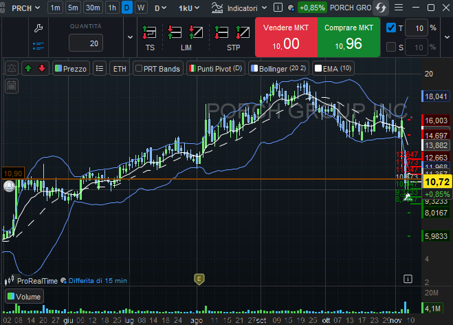 Per quanto riguarda PORCH GROUP (PRCH), il segnale d’acquisto è scattato ai 10$ e il target è ai 15$, con potenzialità di ritornare sui 19$.