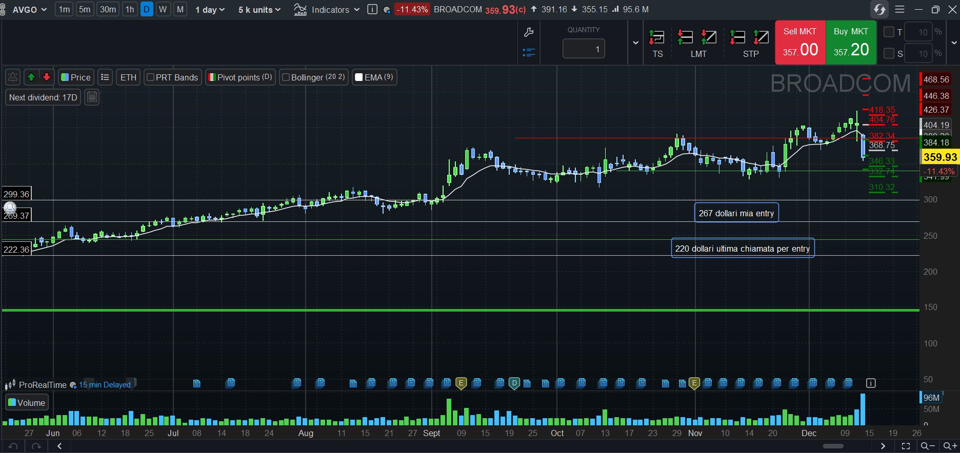 Il caso Broadcom (AVGO) è esemplare. Dopo una corsa folle che ha portato il titolo a guadagnare il 75% nell'anno fino a toccare massimi storici oltre i 400 dollari, la correzione di Venerdì 12 dicembre è stata brutale.