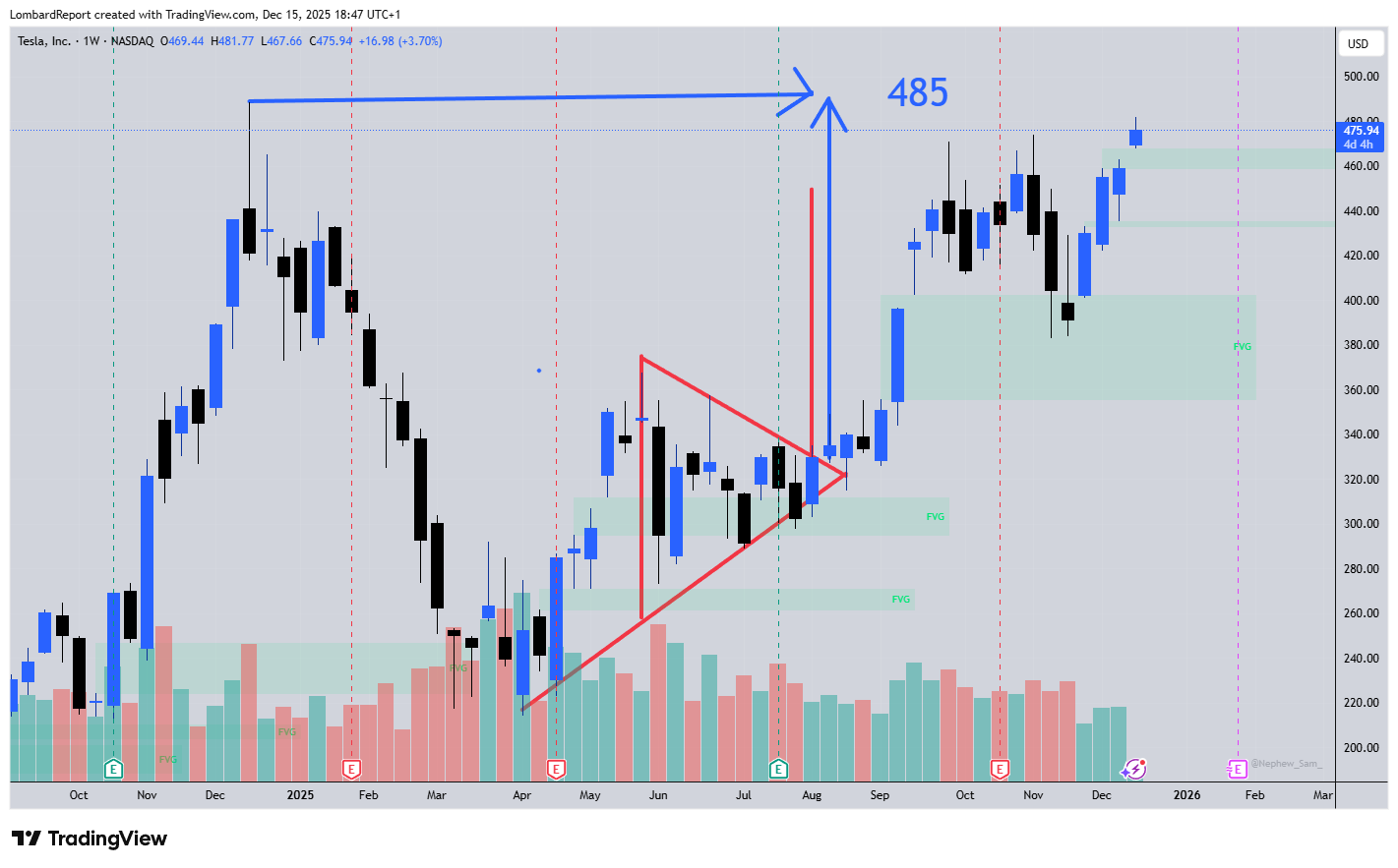 TESLA: se continua così al prossimo uncino sopra 500 è da prendere perché finisce sulla luna