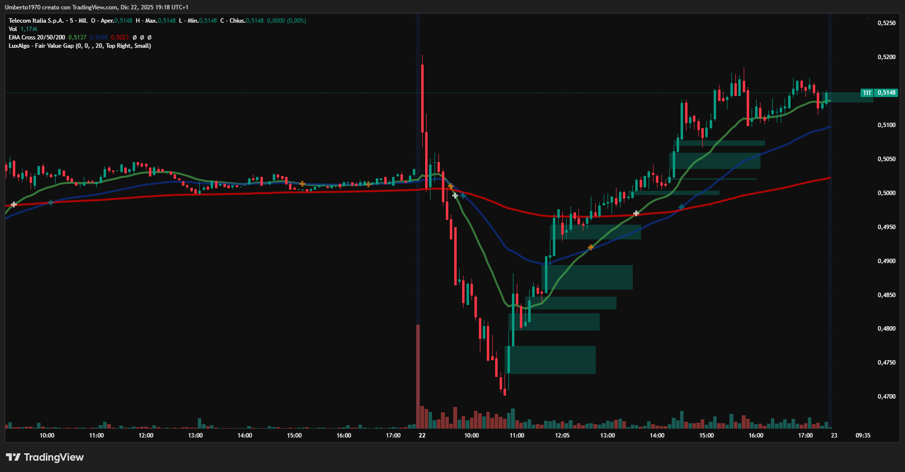 Purtroppo non sono stato così brillante da fare uno screen shot del book che ad un certo punto della giornata mi si è presentato davanti : c'erano ordini (a sinistra) che compravano nell'intorno di 0,60 e altri che vendevano (a destra) nell'intorno di 0,49. Cioè : "ma qui si sta ribaltando la situazione !!" (cit.) Tralasciando il gap tra bid ed ask che anche in caso di normalità sarebbe stato anomalo vedere in tali proporzioni, c'erano singoli ordini (non sommatorie !!) per andare a manipolare il mercato e condurlo verso territori che non si vedono da oltre un lustro. E analogamente, con questi metti e togli che non vengono eseguiti, al mattino abbiamo assistito ad un inesorabile drawdown fino al momento in cui le macchinette hanno invertito e la giostra ha cambiato direzione.