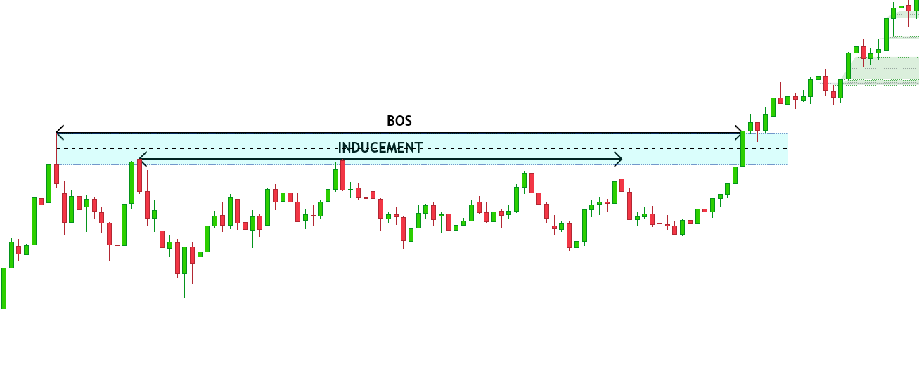Nel metodo ICT, l’inducement è un movimento creato intenzionalmente dal prezzo per attirare trader nella direzione sbagliata prima dell’espansione reale. Si manifesta come un avvicinamento agli estremi (massimo/minimo) che genera ordini contro-trend. L’inducement serve allo Smart Money per accumulare liquidità — stop loss, breakout anticipati, ordini pendenti — che verrà poi utilizzata come “carburante” per il successivo displacement nella direzione opposta.