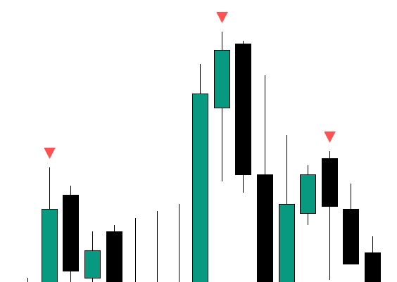 Un Massimo si ha quando a destra e sinistra della candela /barra che lo individua ci sono candele/barre con massimi più bassi