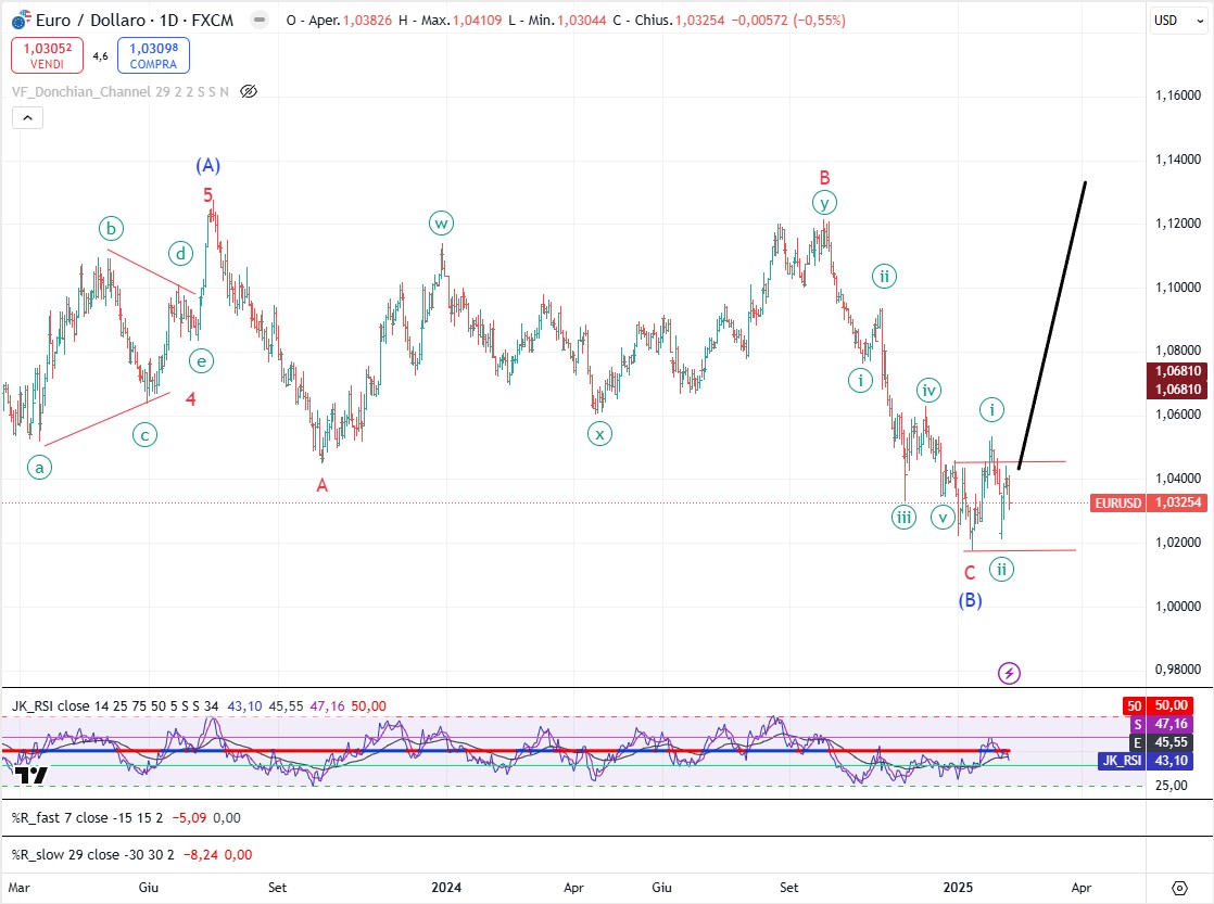La mia previsione per il Dollar Index resta intatta. L’onda (C) di grado intermedio al ribasso è iniziata a 110,176, (Massimo intraday del 13 gennaio). L’onda [iii] dovrebbe fare buoni progressi verso quota 100. L’euro muoverà in direzione opposta.
