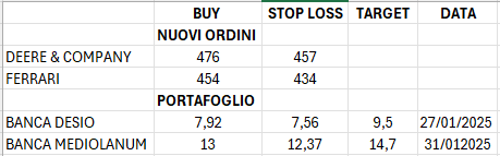 DEERE & COMPANY: domani ci sono gli earnings ma pensiamo siano positivi e quindi piazziamo un ordine di acquisto a 476 stop, stop loss 457, target stiamo a vedere.