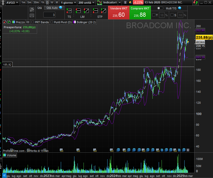 Broadcom Inc (AVGO): Gap up a 186$ da colmare. Un ritorno sopra190 potrebbe indicare forza, ma serve cautela sotto i 180$.