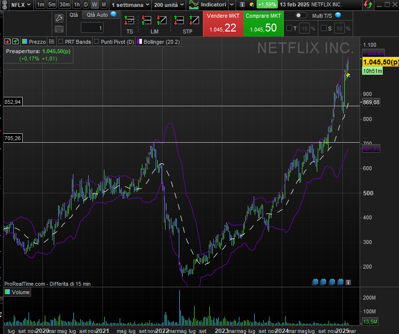 Netflix (NFLX): Si fa un gran parlare di aziende che lavorano nell'ambito dell'intelligenza artificiale e non si parla molto di Netflix ormai quotata oltre i 1000$.
