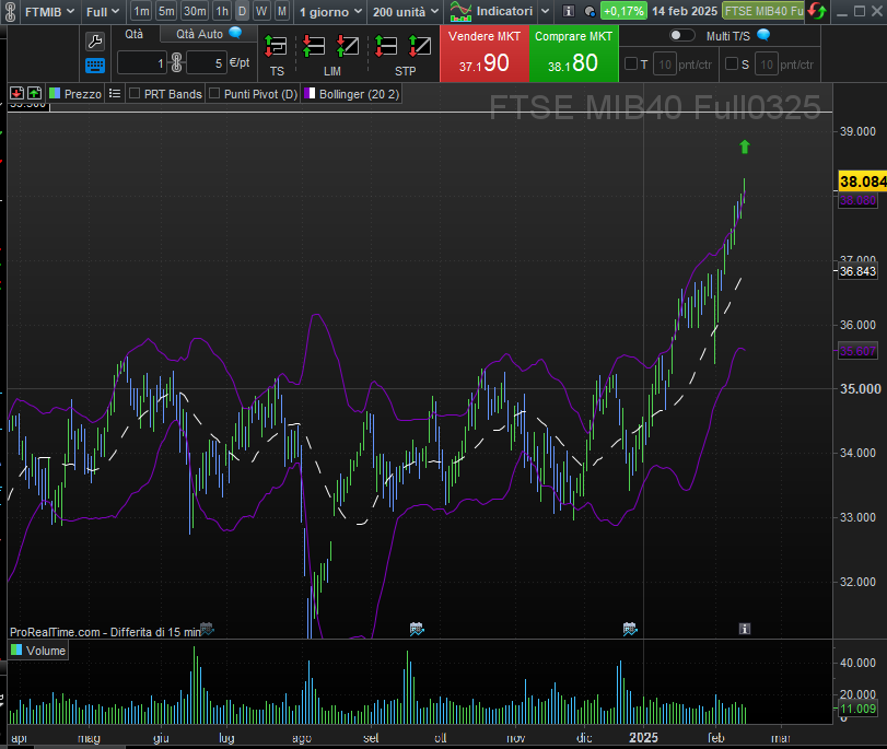 Catalizzatori critici: le elezioni tedesche (22 febbraio) e i dati sull’inflazione USA, che hanno fatto frenare gli allentamenti della Fed. Un aumento dei rendimenti obbligazionari (come il Bund a 132.85) potrebbe drenare liquidità dalle azioni.