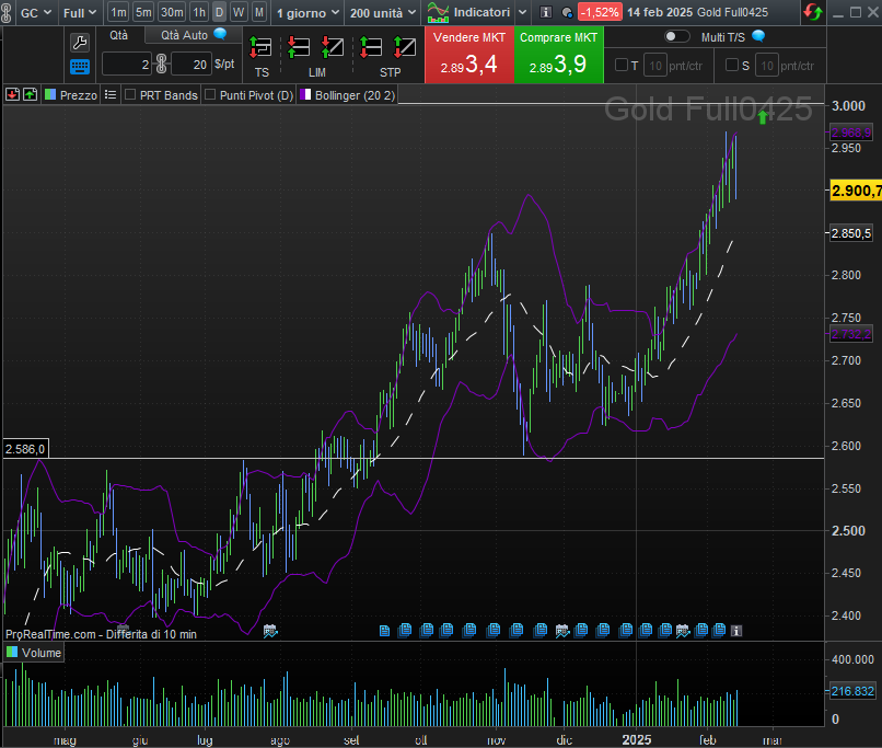 La corsa del metallo riflette timori inflazionistici e tensioni geopolitiche e la candela in correzione ultima riflette proprio il possibile accordo di pace in Europa. Tuttavia, un breakout sopra 3000 $ aprirebbe la strada a nuovi record, ma attenzione a possibili correzioni tecniche.