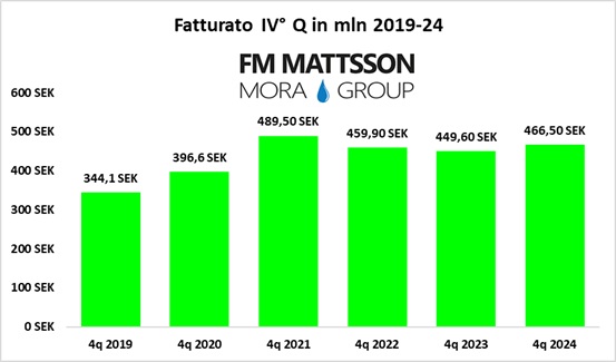 Nel quarto trimestre, FM Mattsson ha mostrato segnali di tenuta, con un fatturato di 466,5 MSEK, in aumento del 3,8% rispetto allo stesso periodo del 2023, trainato da un incremento del 3,2% a livello organico.
