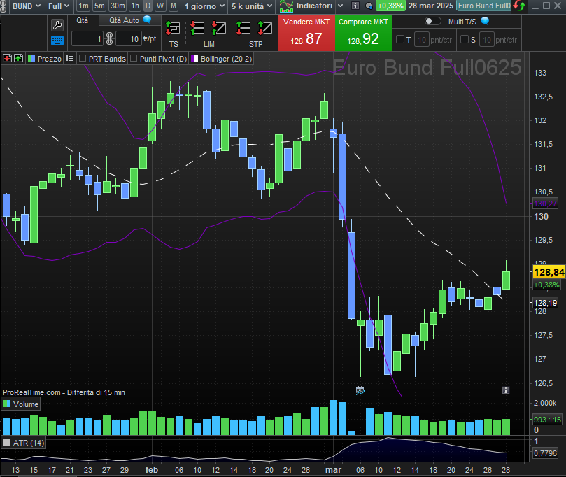 Il Bund tedesco, dopo il tonfo delle scorse settimane, ha finalmente mostrato segni di vita. Per confermare il rimbalzo, serve una risalita oltre 129,5 punti, con target a 131. Stessa musica per i T-bond USA: i futures potrebbero sfruttare la fuga dai rischi per tornare in rialzo.