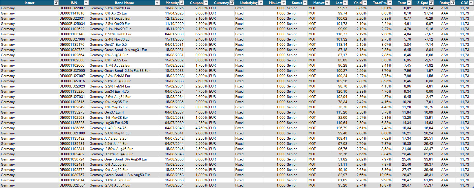 Qui sotto una selezione di governativi tedeschi tra i migliori (in termini di sottovalutazione relativa in base allo Z-Spread) su tutto il tratto di curva.