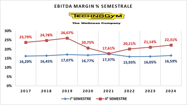 Dal punto di vista stagionale, il secondo semestre si è confermato essere il periodo più prolifico per Technogym nel quale si concentra un volume di ricavi superiore.