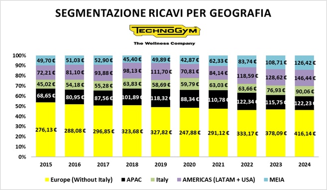 La crescita è stata supportata sia dal segmento B2B, che continua a rappresentare il core business dell'azienda, sia dal segmento consumer, in espansione grazie alla maggiore diffusione della cultura del fitness domestico.