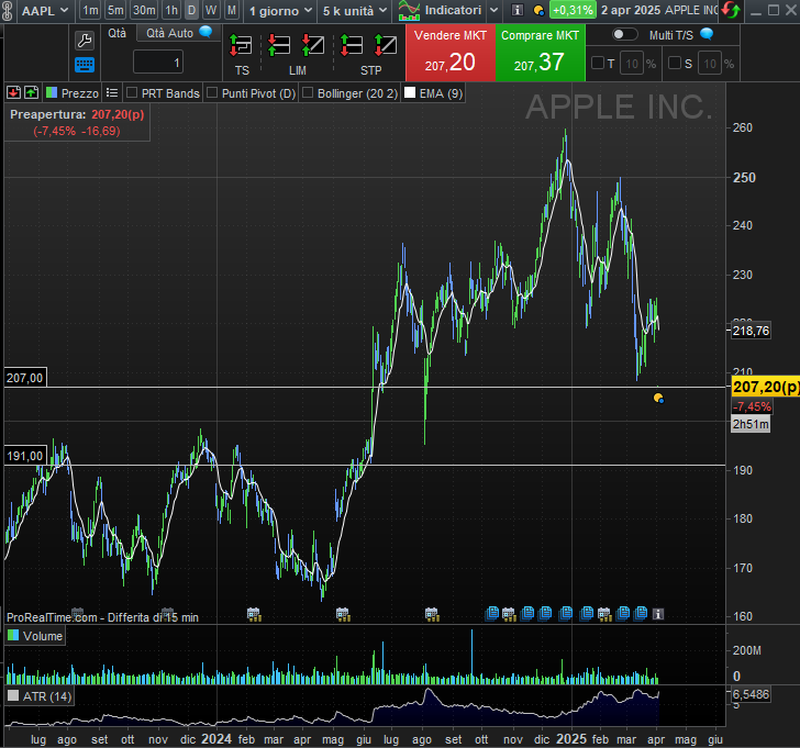 Livello strategico 207 dollari MA, dal momento che già in pre-market è su questo valore, se venisse rotto già in giornata puntare esclusivamente ai 191 dollari. Stop Loss non opzionale e target a vostro gradimento ma entro la decina di dollari.
