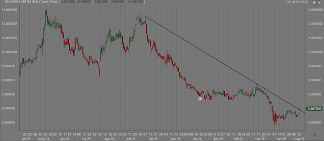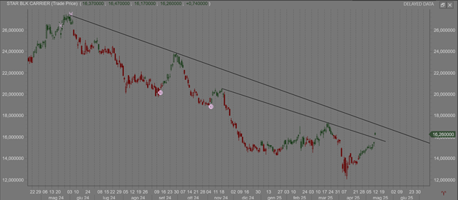 Per arrivare al dunque e dopo questa analisi ho notato come siano state particolarmente sacrificate le societa di trasporto di rinfuse secche in cui spicca la leader SBLK che capitalizza poco meno di 2 Billions oppure SCHIP o la speculativissima CTRM che pero' non ha presentato ancora i conti 2024 per il consolidamento di una mega acquisizione in Germania, quindi meglio soprassedere.