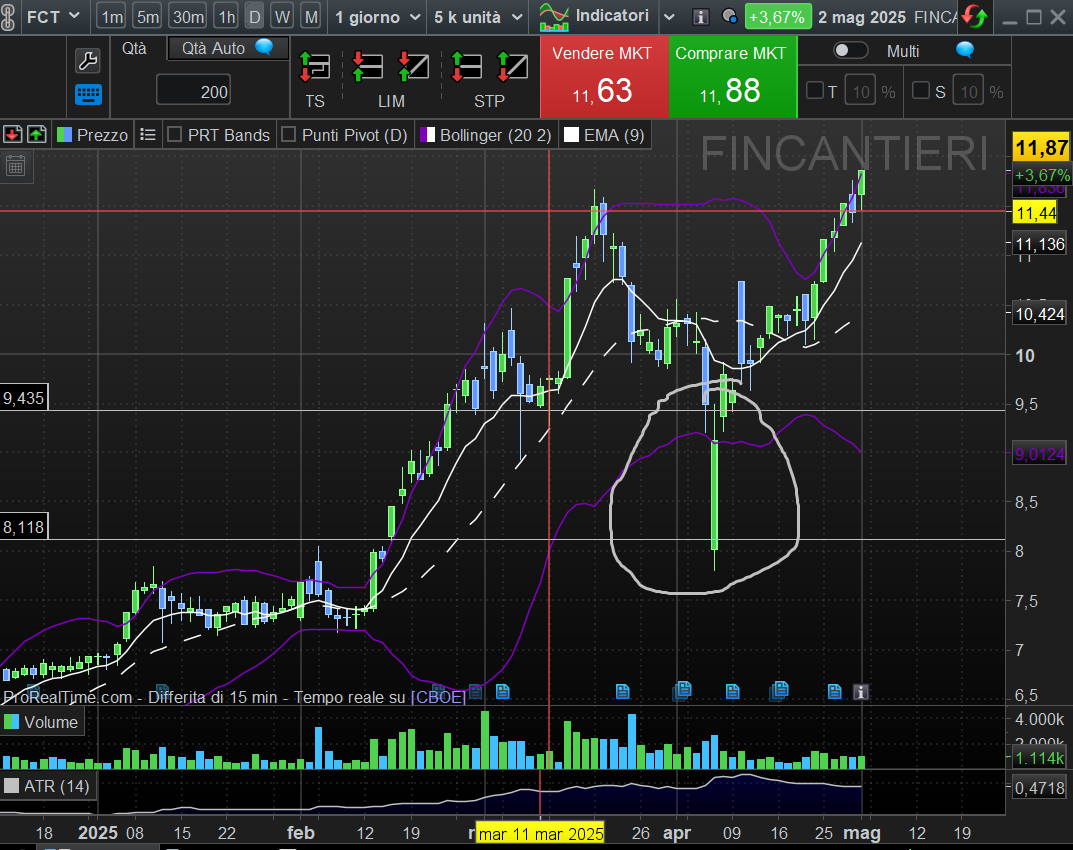 Zona di accumulo: 8-9,50 EUR (acquisti istituzionali sul PNRR navale italiano).
