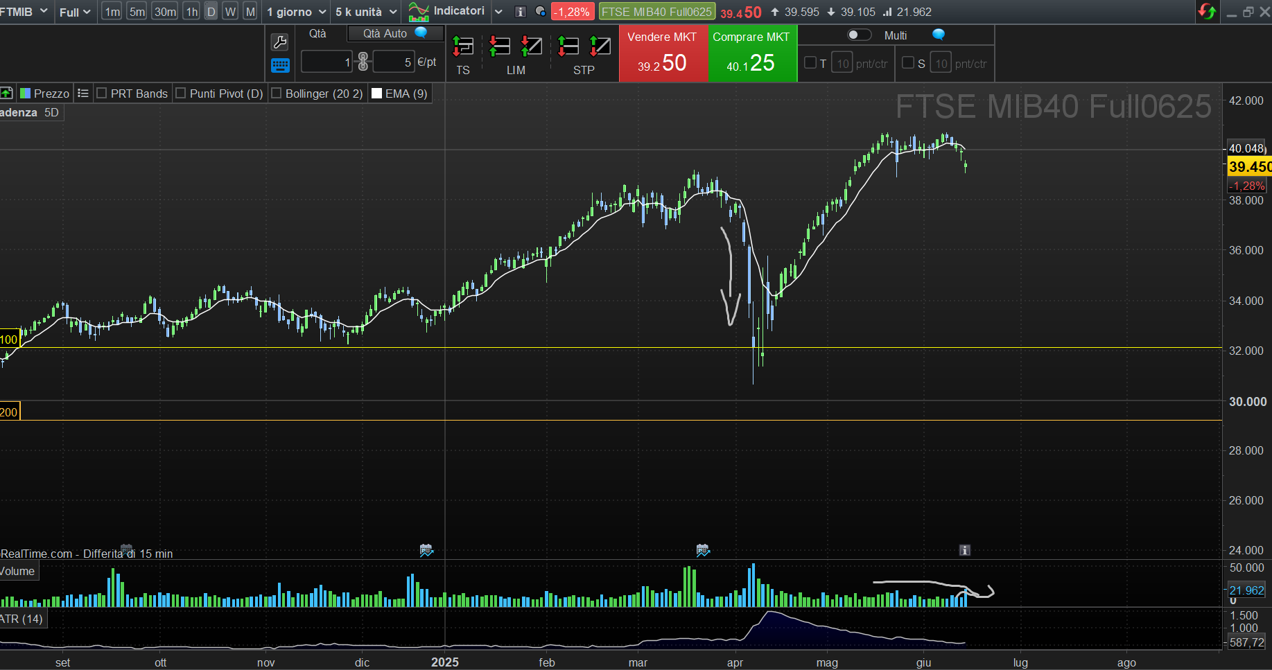 Stop Loss molto importante sotto i 29.000 (livello "no return").