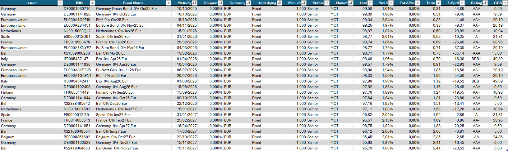 Qui sotto, a titolo di esempio una selezione di governativi con scadenza massima 2027 e potenzialmente utili per recupero minus. In alcuni casi l’emissione è stata addirittura sopra 100, per cui non c’è nemmeno imposta su disaggio di emissione.