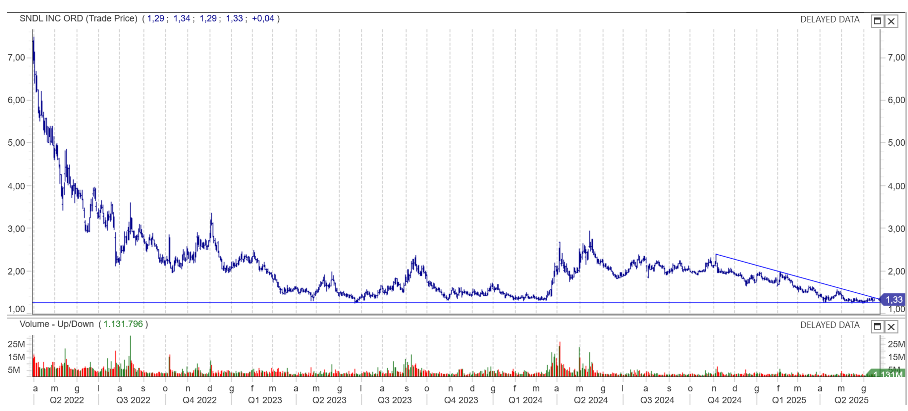 Osserviamo per ultimo un titolo tra i piu deboli del settore SNDL.
