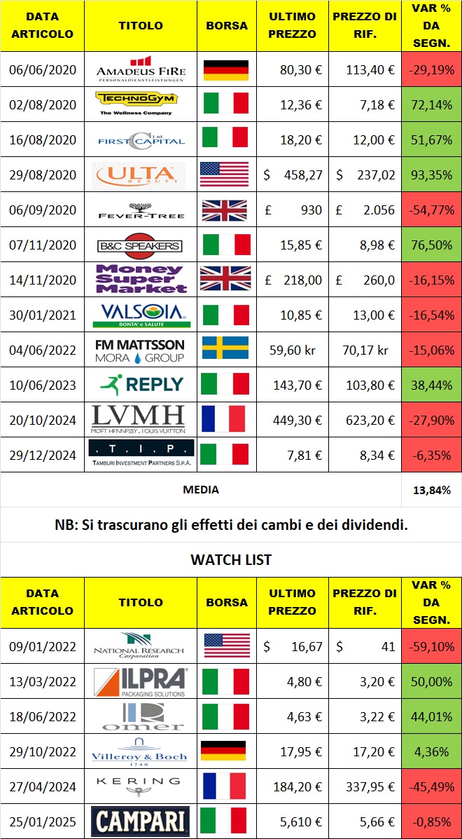 Un'uscita ragionata, con un guadagno a tre cifre (+136% circa) e una gestione disciplinata del rischio, è la miglior conclusione possibile per questa operazione durata poco più di cinque anni. Continueremo a seguire il titolo con attenzione. Il valore c’è, il modello funziona, e non è detto che questa sia un addio definitivo.