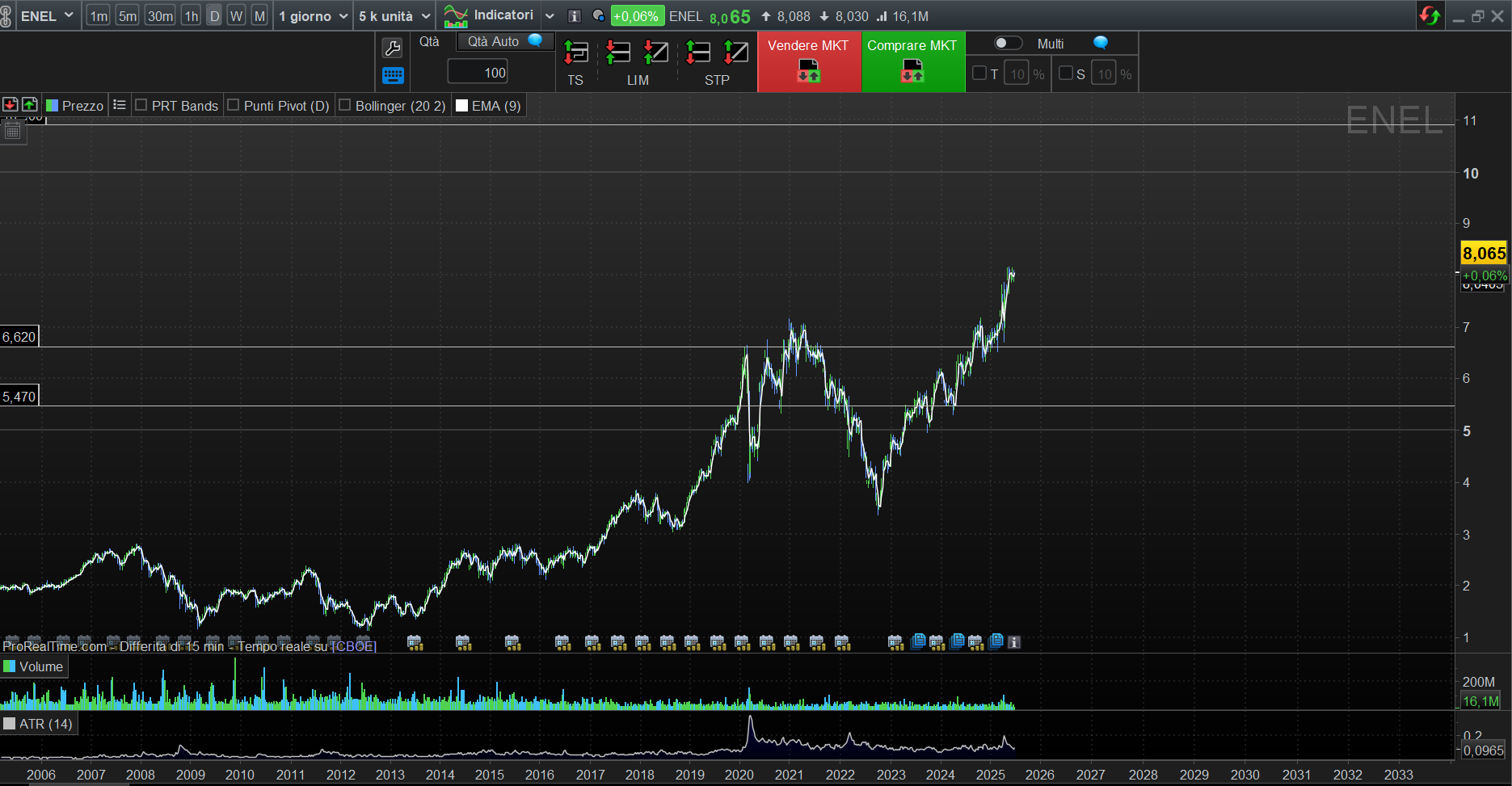 ENEL: Opportunità tecnica con margine di sicurezza. Il target a 11€ è plausibile, ma con stop-loss a 6,60€ per gestire i rischi sistemici.
