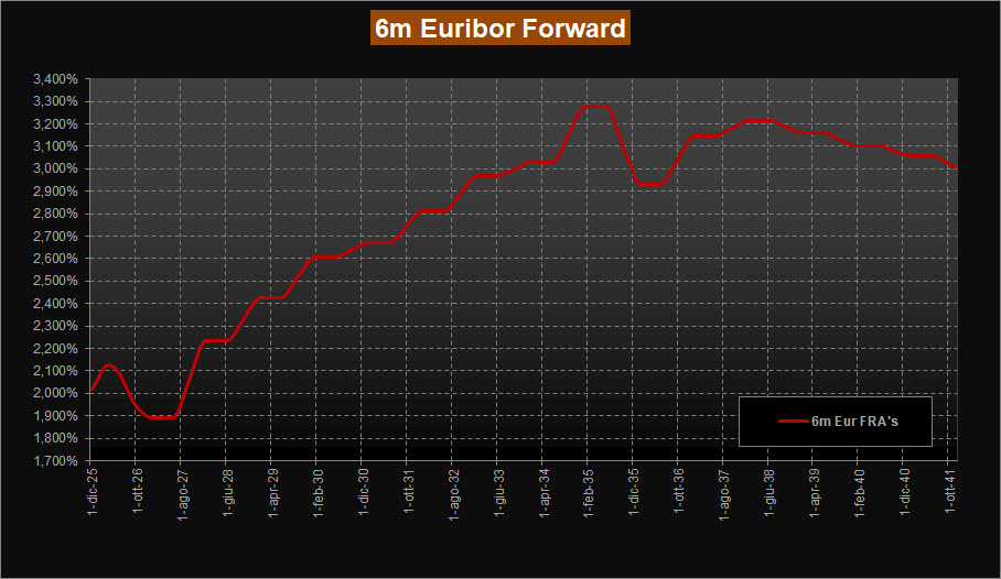 Infine, sul fronte monetario, il tasso forward Euribor a 6 mesi per la fascia tra fine 2026 e inizio 2027 si mantiene stabile in area 1,90%. Il mercato continua, dunque, a prezzare una moderazione dei tassi nel medio periodo, senza discostarsi dalla prudenza che ancora caratterizza lo scenario macroeconomico e geopolitico globale.