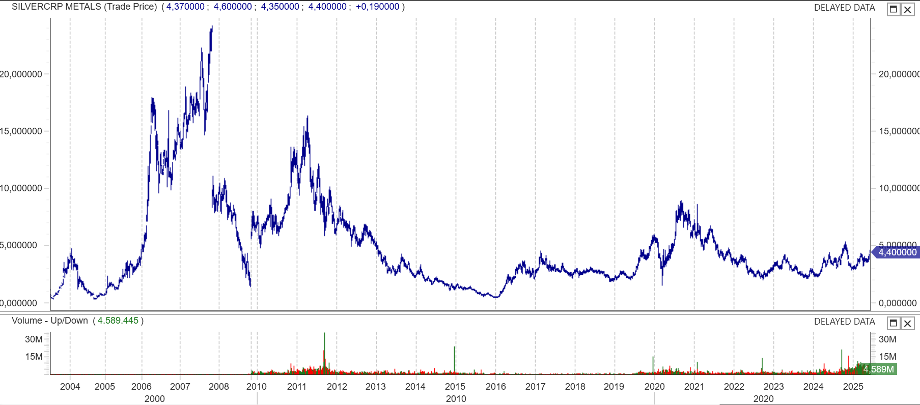 Oltre a ETF quotati in usa sui miners Major e Junior sul silver, come SIL e SILJ, che hanno tutti i prodromi per un salto quantico vedremo alcuni titoli.