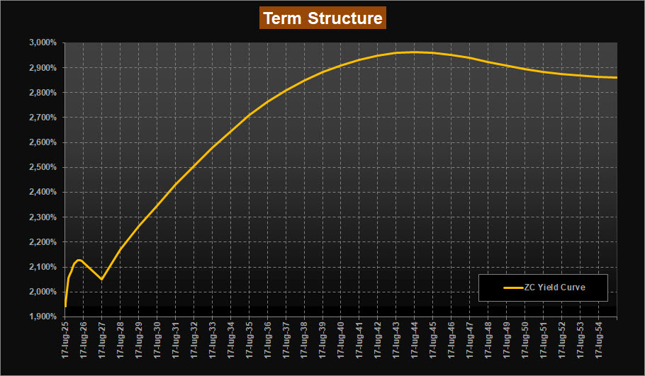 Sul tratto a brevissima scadenza, il nervosismo osservato nei mesi scorsi appare ormai rientrato: l’inclinazione della curva è tornata positiva anche su queste porzioni, segno di un mercato che non sconta più tensioni a breve termine sui tassi.